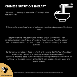 The practice of healing using natural foods has been used for 1,375 years, since it was noted in Recipes Worth a Thousand Gold when cardamom was noted to "cure heartburn and stomach, stop vomiting, and get rid of bad breath".